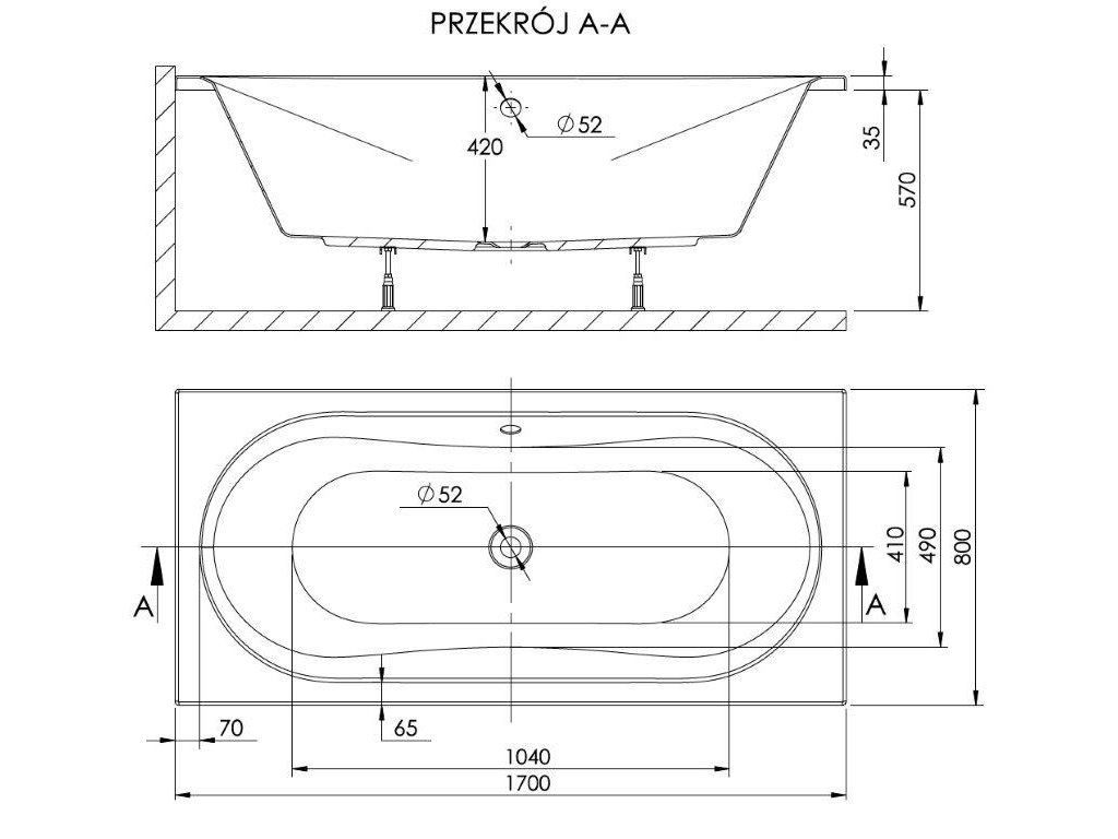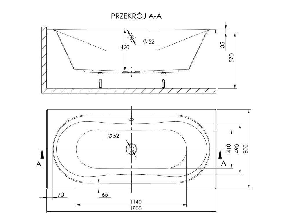 - dizajn - rovná vaňa, oválny interiér vane