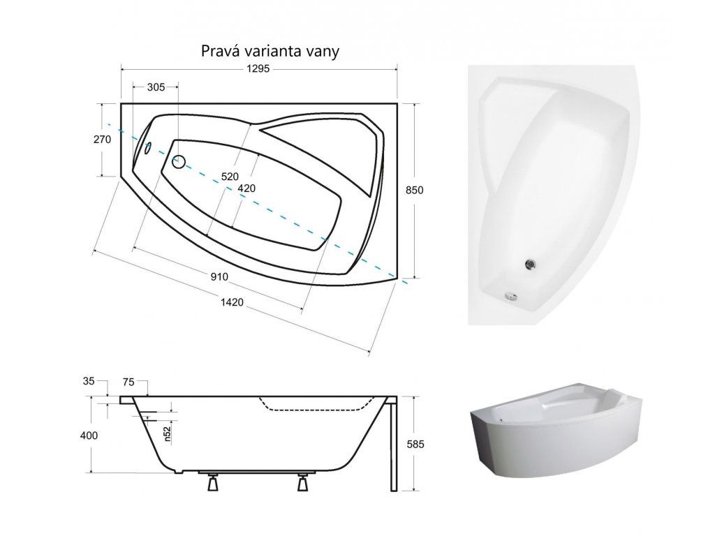 Moderná akrylátová vaňa v dizajnovom asymetrickom tvare pre nový a útulný vzhľad vašej kúpeľne. Vaňa je vyrobená z krylátu 100, ktorý zaručuje farebnú stálosť, vysokú pevnosť, dlhú životnosť, má vynikajúce tepelnoizolačné vlastnosti a dlhú životnosť. Táto vaňa bude určite dlho slúžiť k vašej úplnej spokojnosti.