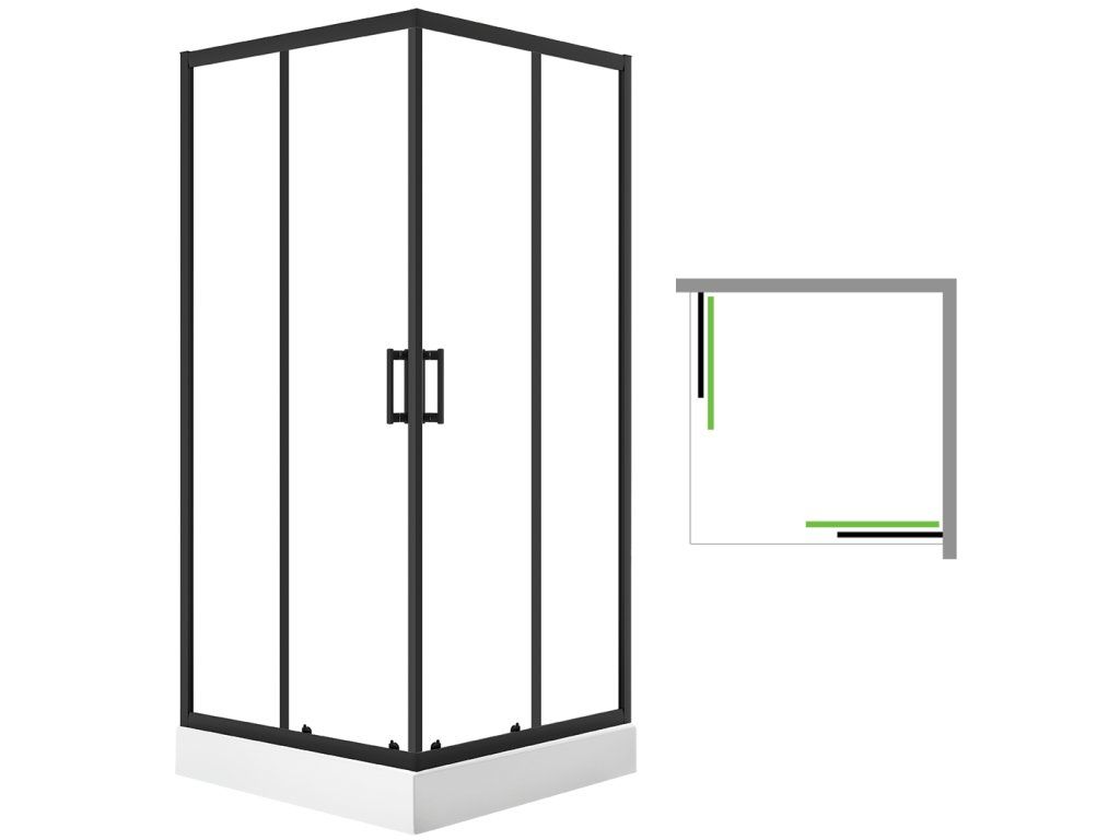 Bresso štvorcový sprchový kút s vaničkou, čierny