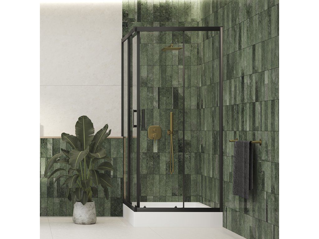 - dizajnový štvorcový sprchový kút s čiernymi profilmi