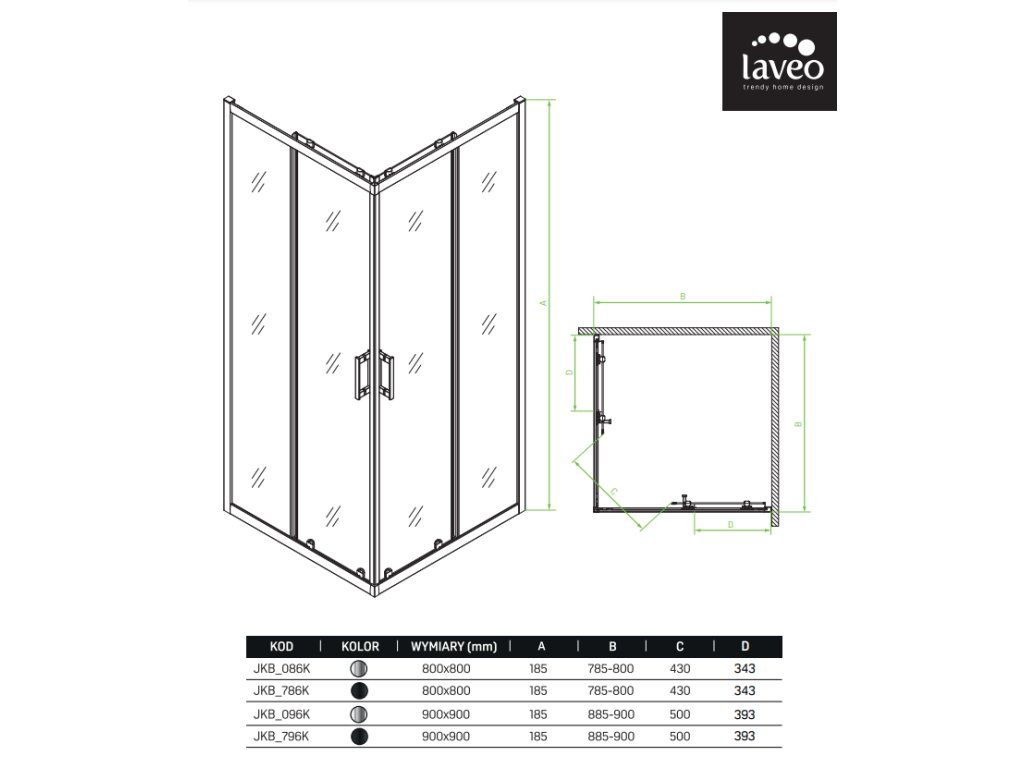 Štvorcový sprchový kút Bresso s čiernymi dizajnovými profilmi je vhodný aj do menších kúpeľní. Vďaka priehľadnému sklu dokonale vyniknú obklady vo vašej kúpeľni. Čierne profily a úchyty možno dokonale zladiť s čiernymi doplnkami vrátane batérií.
