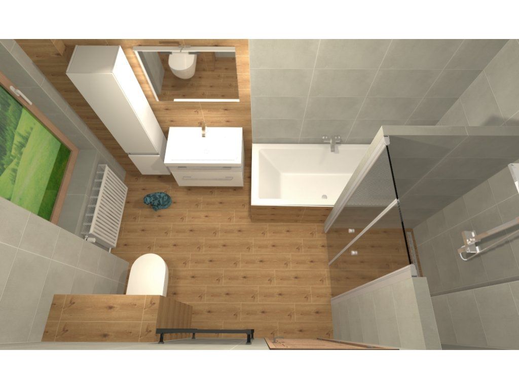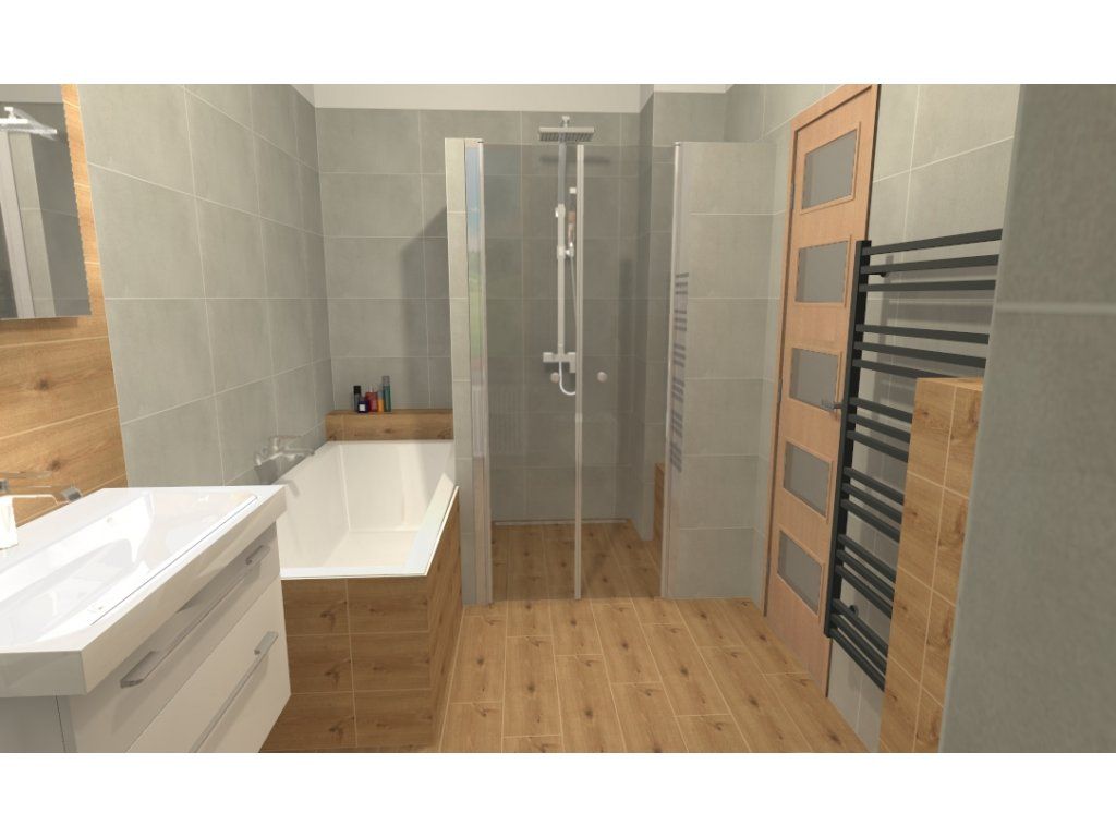 Ide o skutočne štruktúrovanú kúpeľňu s veľkou vaňou, krásnym nábytkom, sprchovacím kútom, toaletou a úložným priestorom. Čo viac si môžete priať?