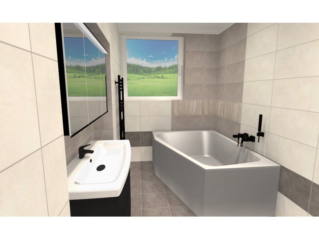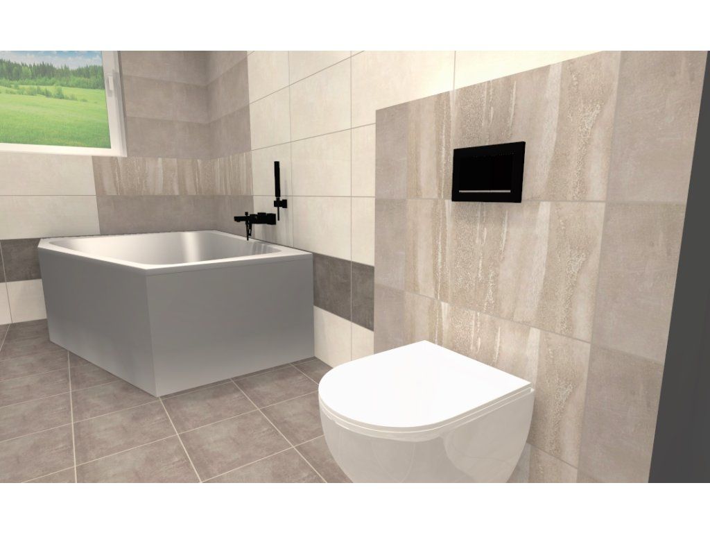 Čo sa týka obloženia kúpeľne, je naozaj veľmi decentné, vkusné a nadčasové, takže zákazníka určite neomrzí ani po niekoľkých rokoch. Kúpeľňa je obložená obkladmi zo série Alpe, ktorá kombinuje bielu, sivú a antracitovú farbu, to všetko doplnené zaujímavým dekorom so zaujímavými striebornými detailmi.
