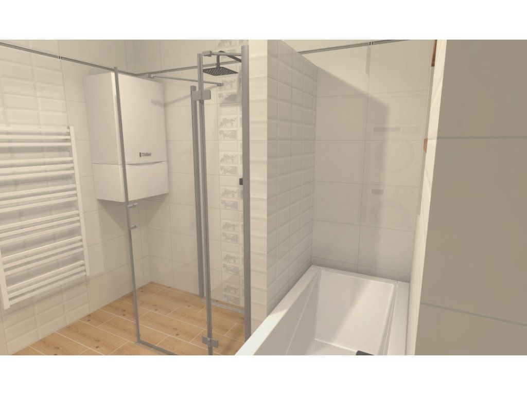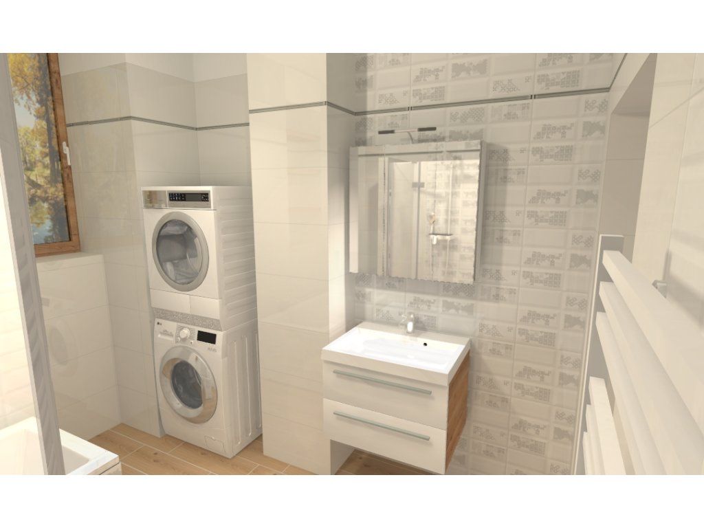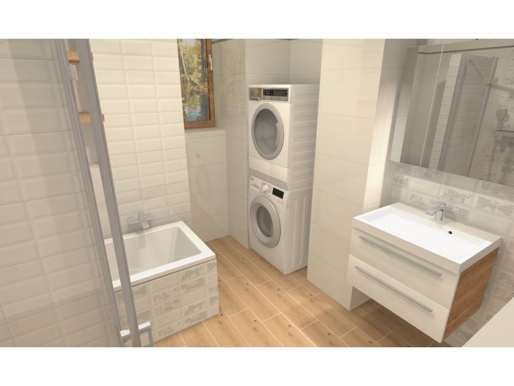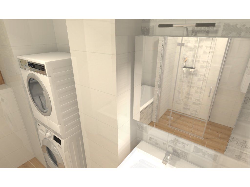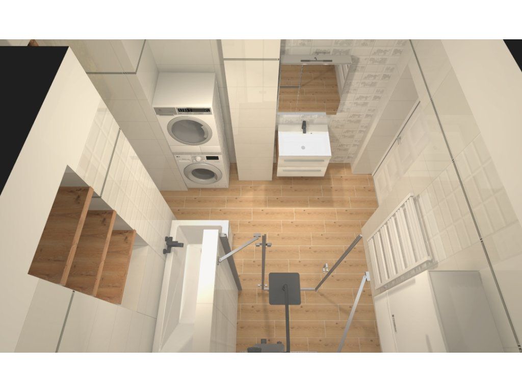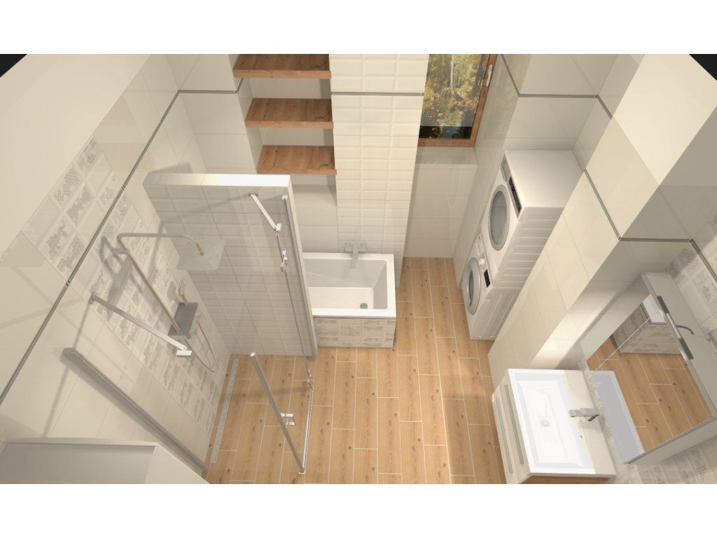 Zadanie zákazníka bolo jasné. Do kúpeľne bolo potrebné umiestniť vaňu, väčší sprchovací kút, práčku a sušičku, skrinku s umývadlom a kúpeľňový vykurovací rebrík, pričom rozmiestnenie plynového kotla bolo jasne dané a jeho umiestnenie nebolo možné zmeniť. Na takýto priestor to nebolo práve málo. Bolo to trochu náročné, pretože kúpeľňa, hoci nie je úplne malá, je plná výklenkov, rohov a zákutí, čo znemožňovalo jednoduché usporiadanie nábytku.
