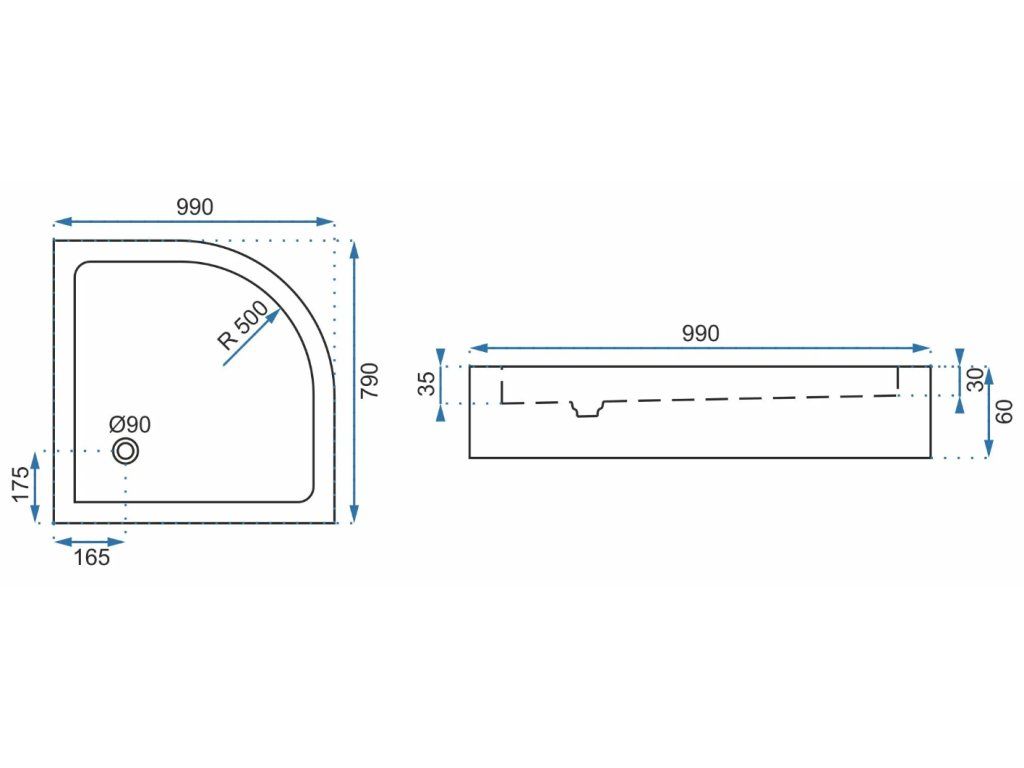 - sprchová vanička v štvrťkruhovom vyhotovení