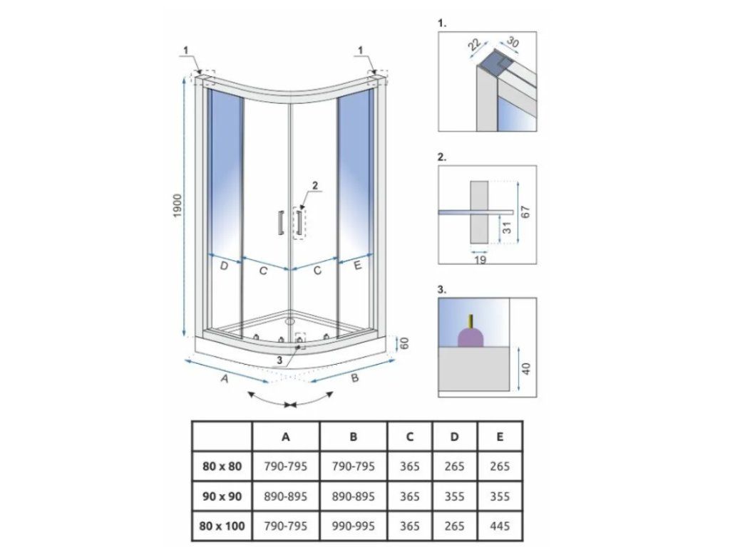 Tabuľka rozmerov sprchového kúta Look Chrom
