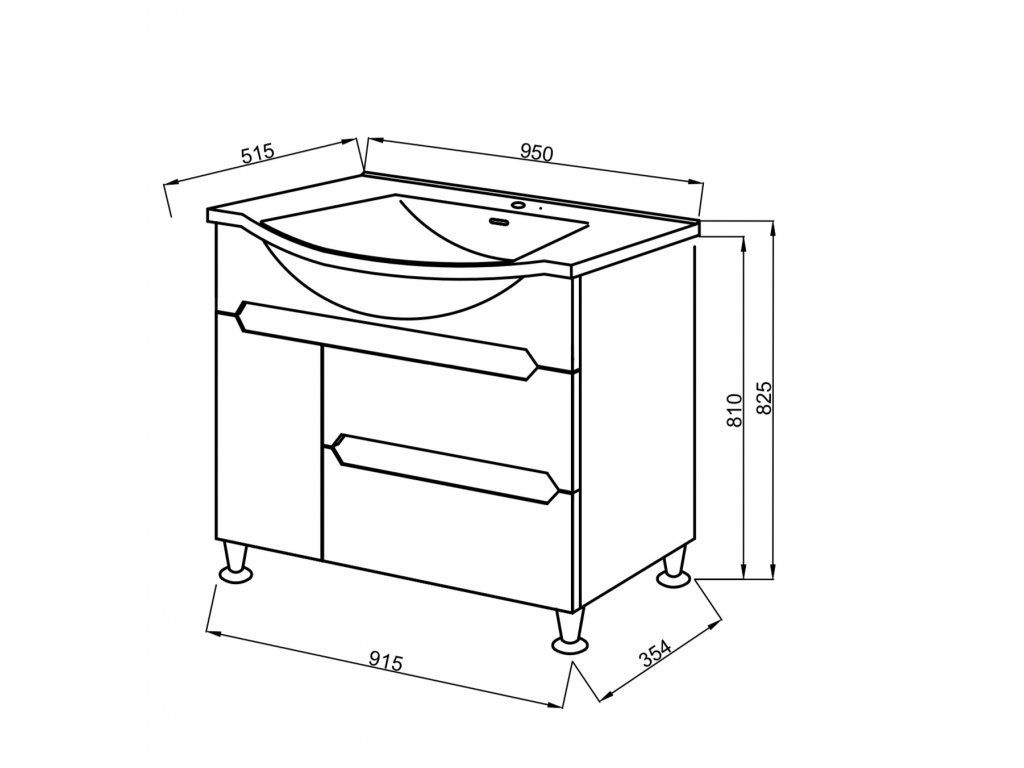 - rozmery skrinky (vrátane nôh a umývadla) - 95 x 82,5 x 51,5 cm (š,v,h)