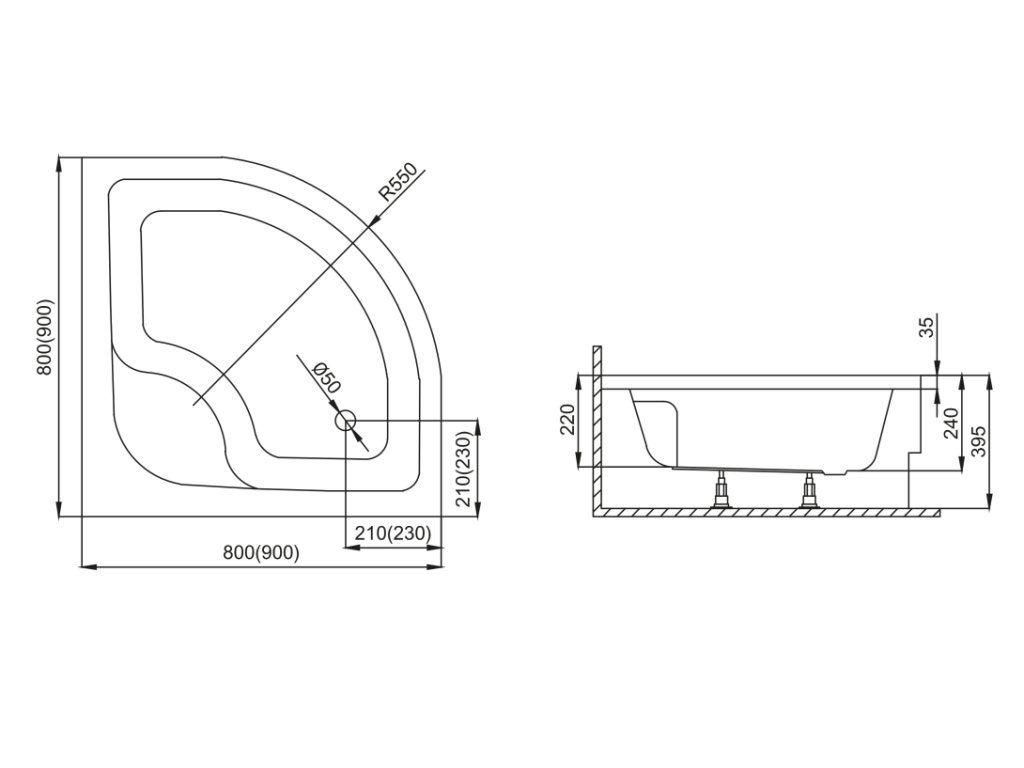 Veľmi praktická a kvalitná štvorcová sprchová vanička, vyrobená z kvalitného sanitárneho akrylátu (vystuženého živicou).