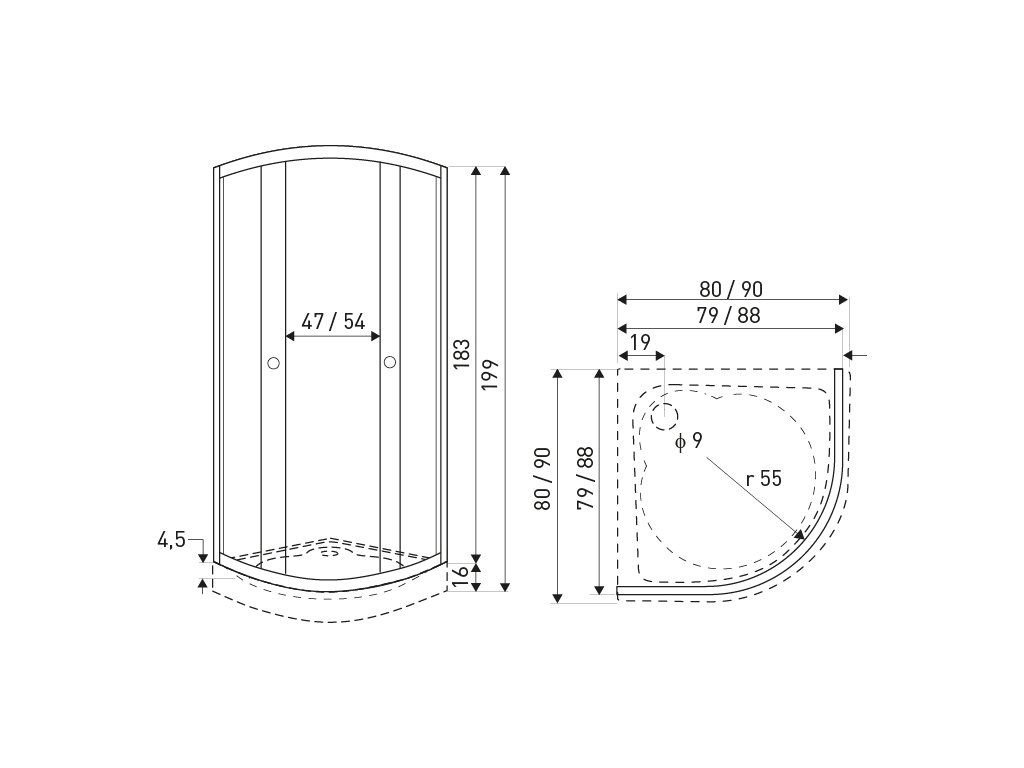- možno použiť so sprchovou vaničkou s polomerom R550