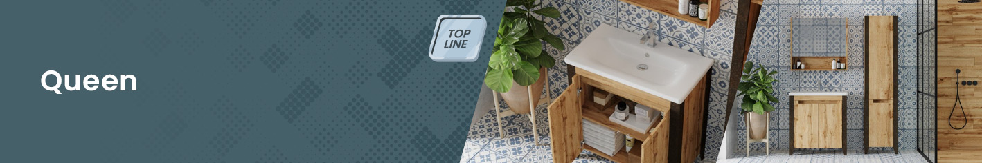 Ako jedna z najobľúbenejších sérií kúpeľňového nábytku medzi našimi zákazníkmi má Queen čo ponúknuť. Séria Queen je k dispozícii v matnej bielej farbe alebo v krásnom drevenom vyhotovení (dub wotan). Obe verzie skrášľujú tmavohnedé nožičky, ktoré sa tiahnu od hornej časti nábytku až po podlahu. Táto séria ponúka mnoho veľkostí skriniek s umývadlom a skriniek so zrkadlom. Zo širokej ponuky od 65 cm do 90 cm si vyberie každý! Skrinky už obsahujú krásne keramické umývadlo obohatené o antibakteriálny povrch, vďaka ktorému bude jeho údržba úplne jednoduchá. Skrinky so zrkadlom zdobia LED pásy po stranách skrinky, ktoré zaručia absolútne dizajnový nádych kúpeľne a zároveň tak príjemne osvetlia priestor. Nesmieme zabudnúť ani na vysoké skrinky! S vysokými skrinkami získame úložný priestor, ktorého je v kúpeľni často naozaj málo.