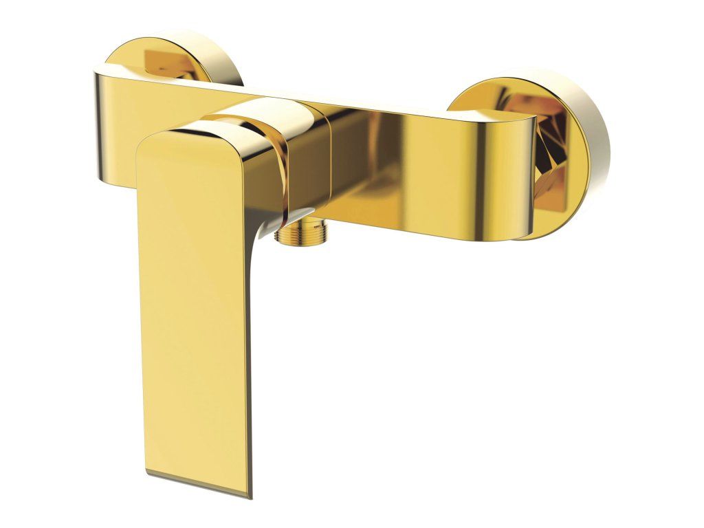 Táto elegantná sprchová batéria Maroco vyniká moderným a minimalistickým vzhľadom. Telo batérie je vyrobené z mosadze, ktorá je potiahnutá vrstvou zlatého lesku.