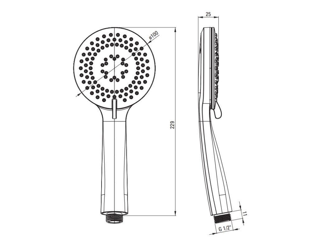 - dizajn - okrúhla ručná sprcha s držiakom a sprchovou hadicou