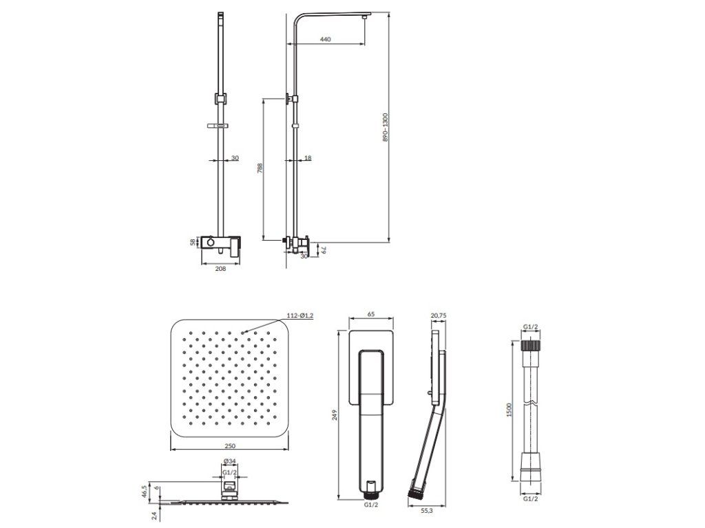 - dizajnová sprchová súprava vrátane mosadznej batérie