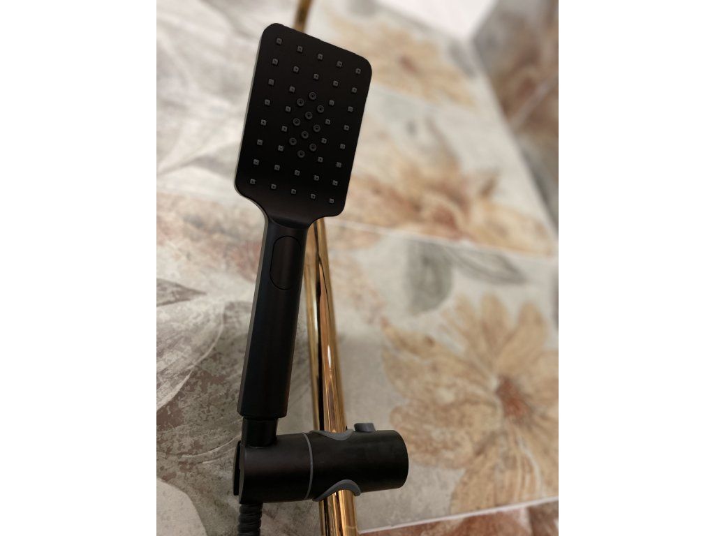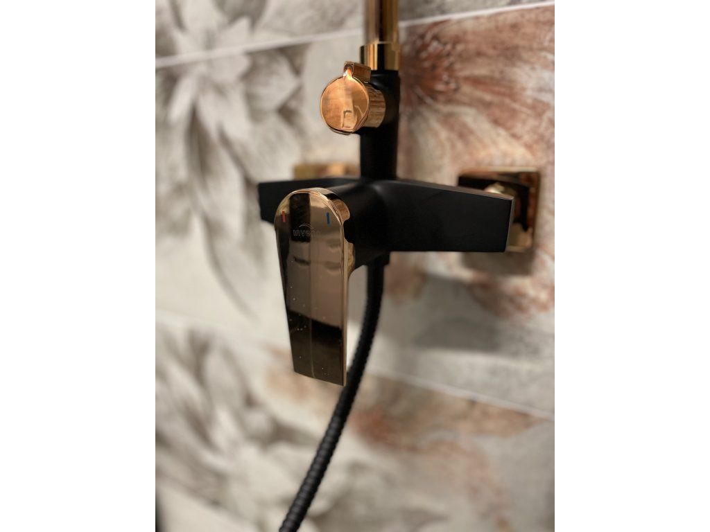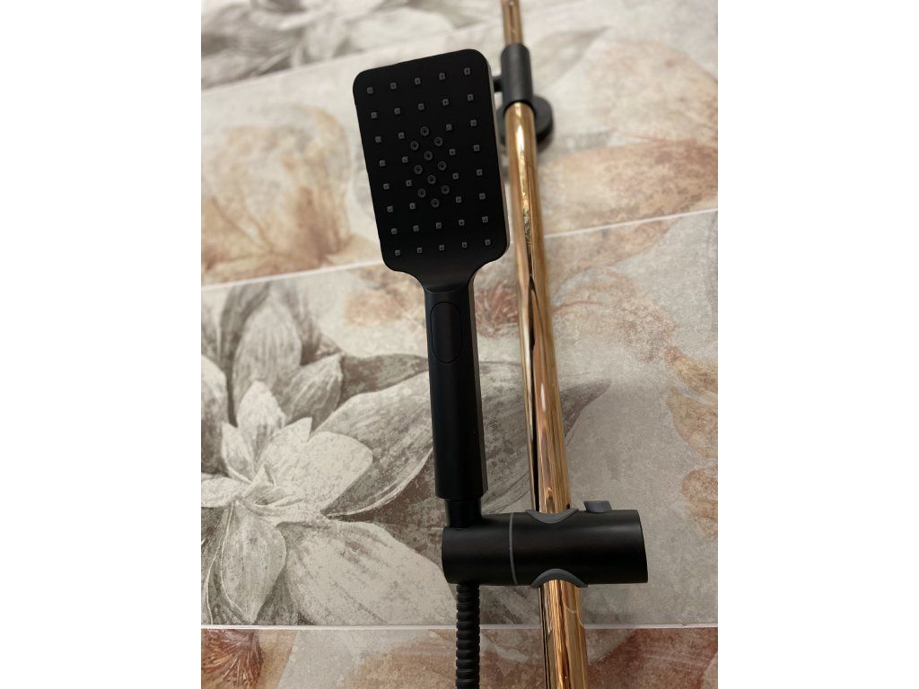 Vysokokvalitná sprchová súprava Midy s batériou z mosadze v krásnej čiernej a ružovozlatej farbe je absolútne dizajnovým a elegantným kúskom do vašej kúpeľne. Kombinácia dvoch najmódnejších farieb v interiérovom dizajne nadchne každého. Matná čierna a ružovo zlatá je to pravé, čo dokonale doplní dizajn vašej kúpeľne.
