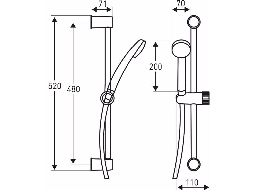 - dĺžka sprchovej tyče - 52 cm