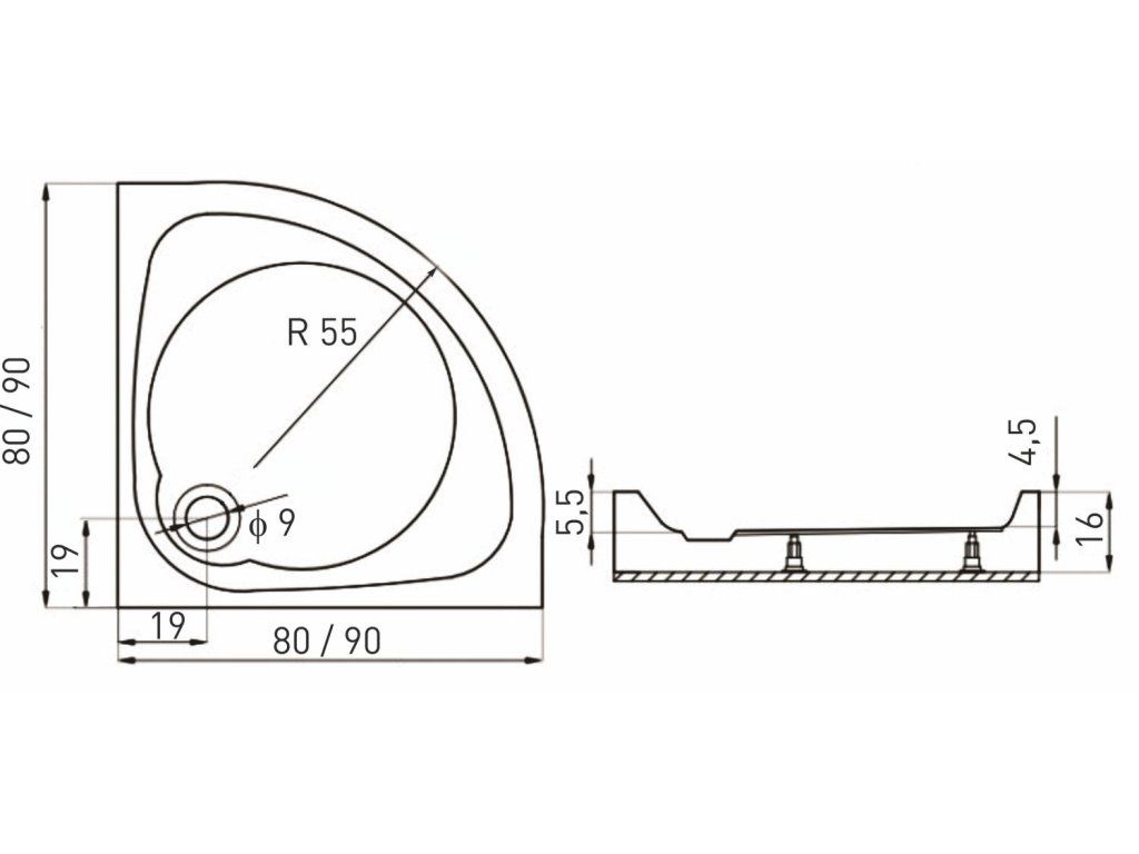 - rádius pre vaňu - R550
