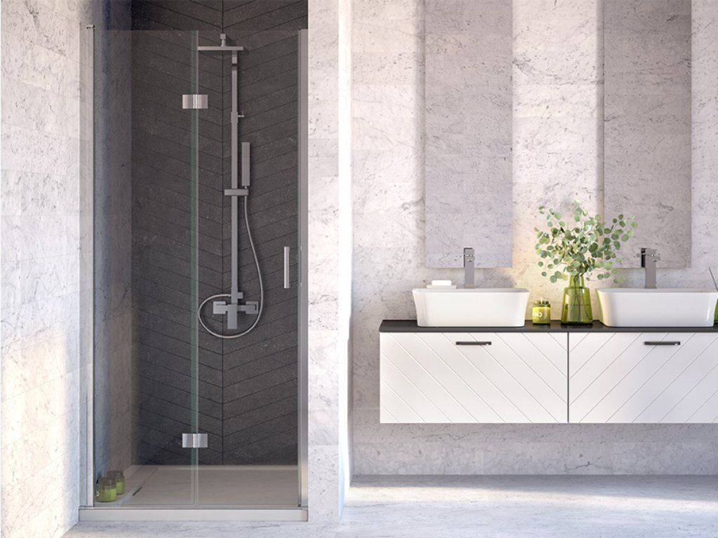 - Dizajnové sprchové dvere s chrómovými profilmi