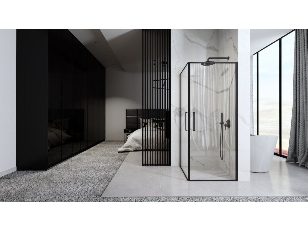 Abra je veľmi nadčasový a dizajnový sprchový kút, ktorý je vyrobený z najlepších materiálov. Čierna farba je hlavným lídrom na trhu kúpeľňových interiérov, a preto jej čierne profily dodávajú kútu ten správny nádych modernosti. Sklo je odolné voči nečistotám a škvrnám. Kombinácia čiernych profilov a čiernej vertikálnej rukoväte spolu s priehľadným sklom sa dokonale hodí do moderných trendových kúpeľní.
