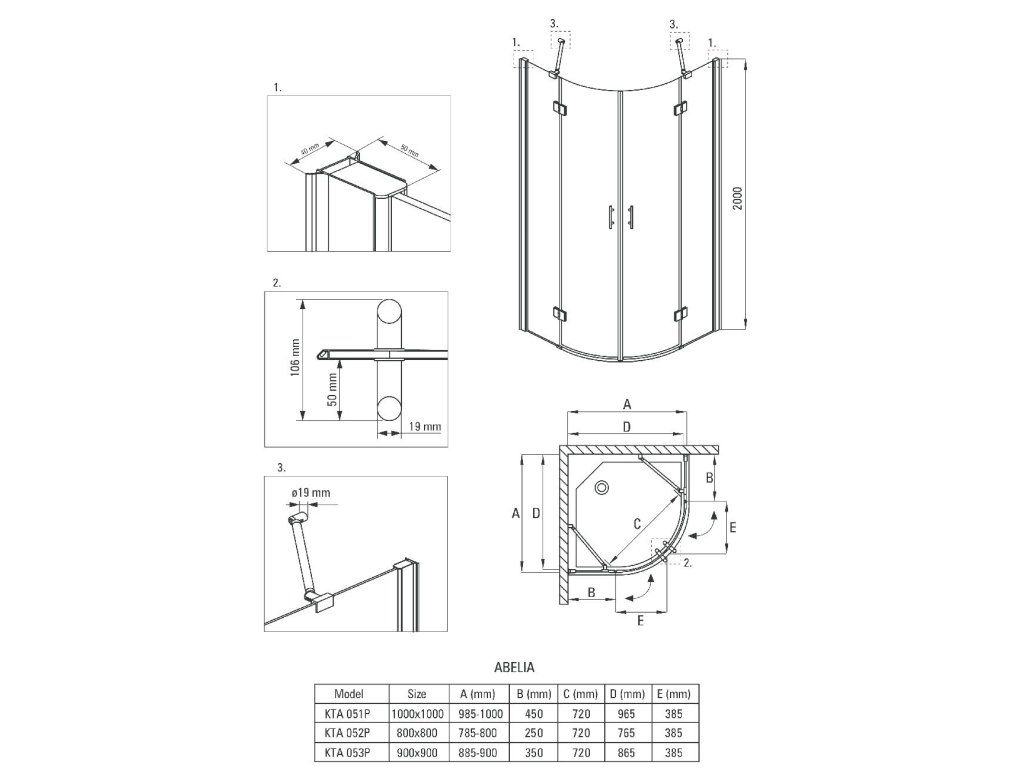 - štvrťkruhový dizajn, dvojkrídlové dvere