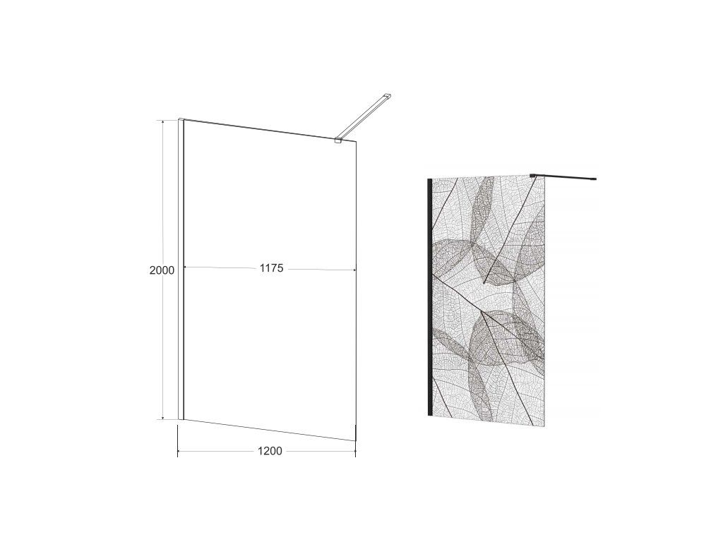 Tabuľka rozmerov sprchového kúta Walk in Leafy