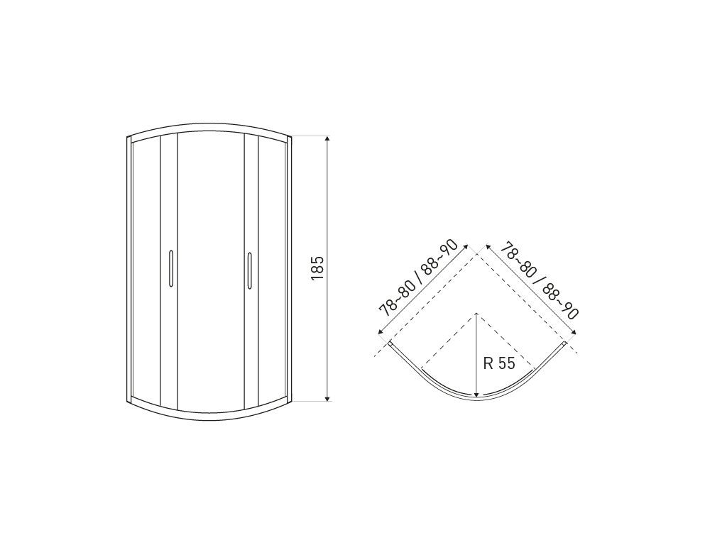 - Štvrťkruhový dizajn - dvojité dvere s ložiskovým systémom otvárania (posuvné)