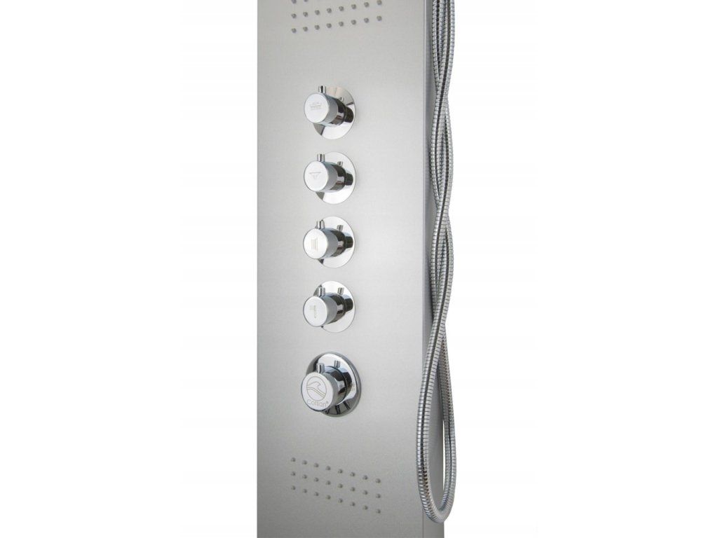 Panel má štyri ovládacie prvky, ktoré slúžia na prepínanie medzi sprchovacími funkciami, a jeden ovládací prvok, ktorý reguluje teplotu vody. Kovové ovládacie prvky sú potiahnuté vrstvou chrómu s efektným lesklým povrchom. Prítomnosť keramiky v ovládacích hlaviciach zaručuje ich kvalitu.