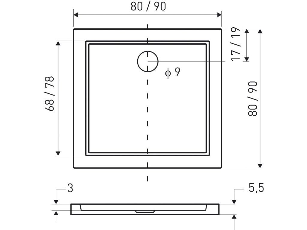 Veľmi praktická a kvalitná štvorcová sprchová vanička vyrobená z vysokokvalitného sanitárneho akrylátu (vystuženého živicou).