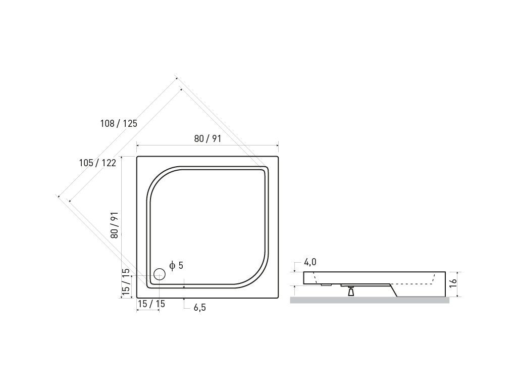 Veľmi praktická a kvalitná štvorcová sprchová vanička vyrobená z vysokokvalitného sanitárneho akrylátu (vystuženého živicou).