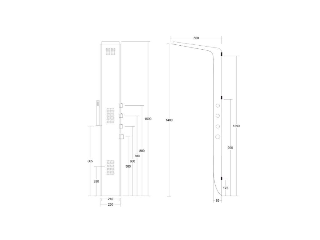 - rozmery panelu - 150 x 23 x 8,5 cm (v, š, h)