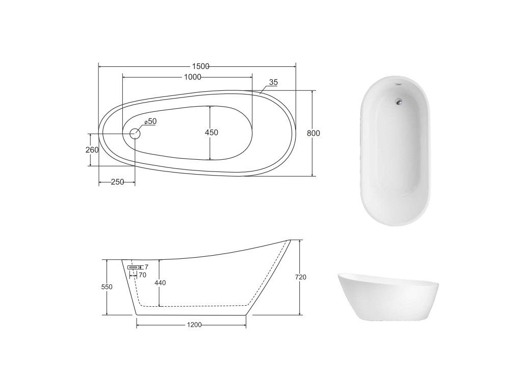 Špecifikácie voľne stojacej vane Melody